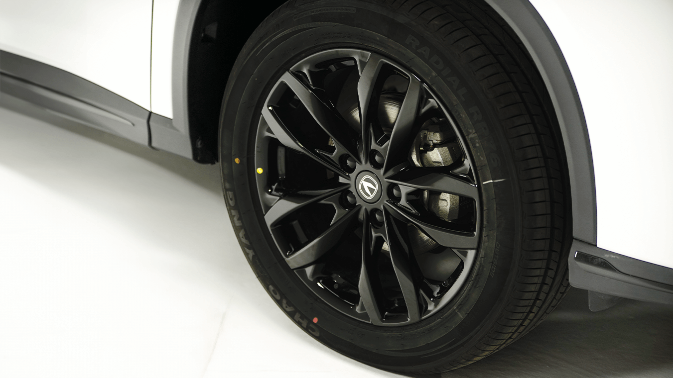 • 18 дюймдік жеңіл қорытпалы дискілер — көліктің сенімді әрі спорттық жол талғамайтын бейнесін айқындайды.