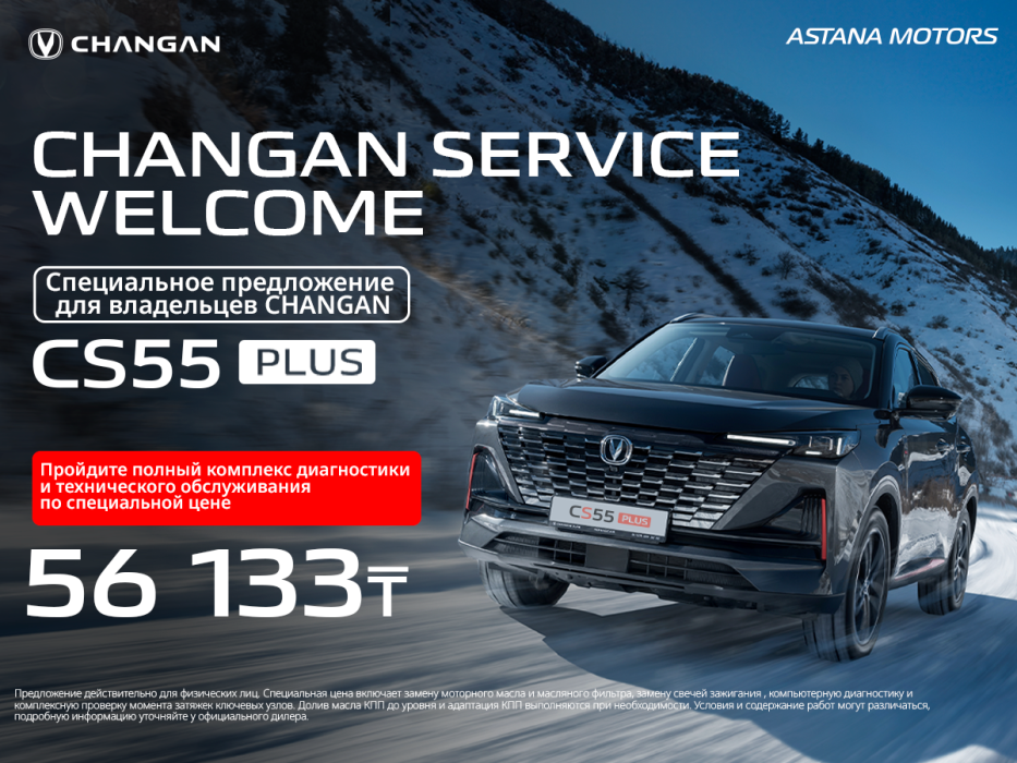 Специальное предложение действует с 08.12.2025 по 08.03.2026. Услуга доступна во всех официальных дилерских центрах Changan в Казахстане.