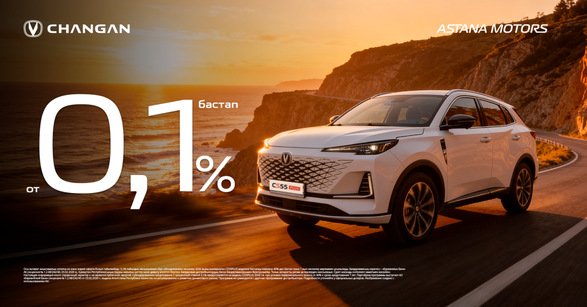 Специальные условия предоставляются при приобретении автомобилей Changan CS55 Plus физическими лицами через АО «Евразийский банк» (лицензия № 1.2.68/242/40 от 03.02.2020 г., выдана Агентством Республики Казахстан по регулированию и развитию финансового рынка).